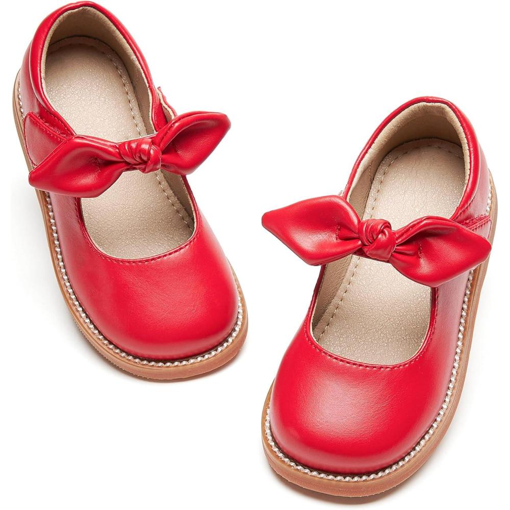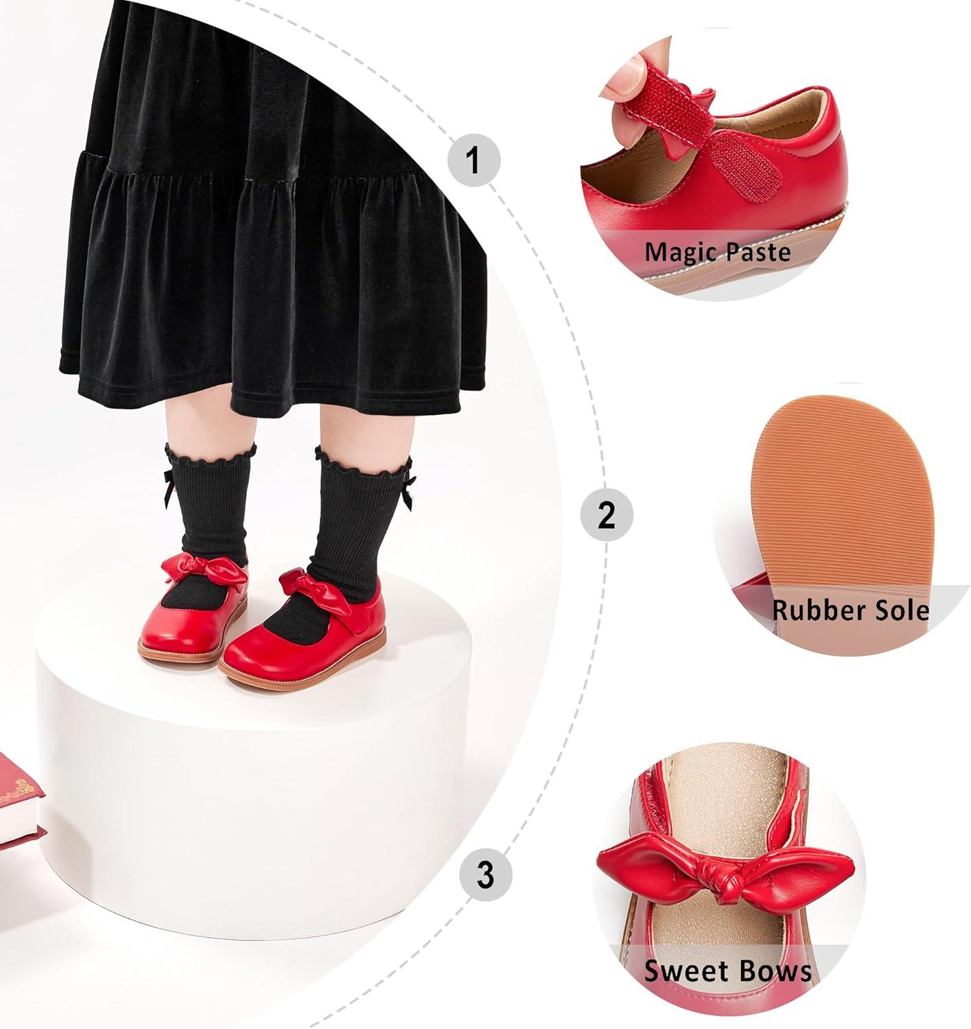 Otter MOMO Toddler/Little Girls Mary Jane Ballerina Flats Shoes Slip-on School Party Dress Shoes(D763-red)