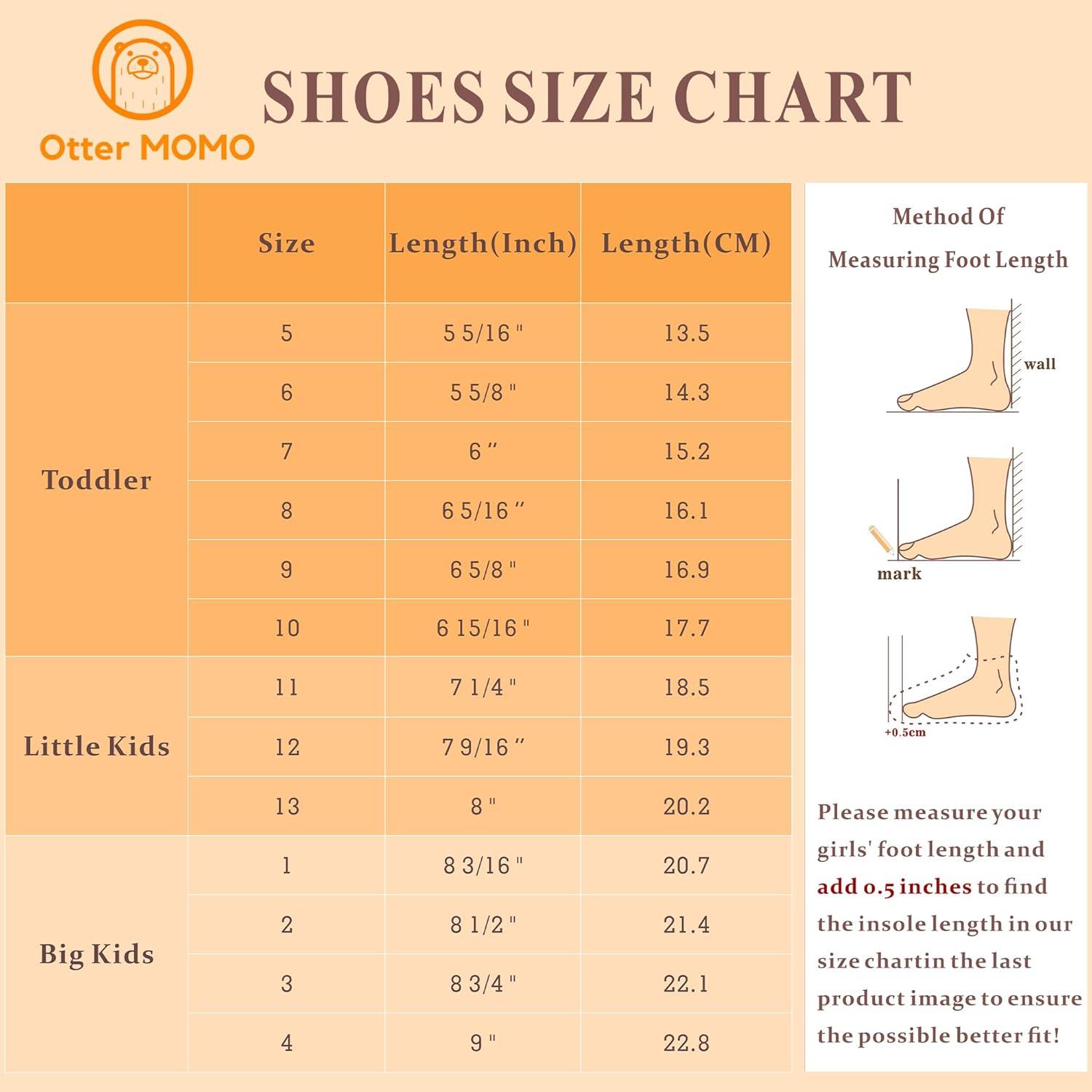Note : We strongly recommend Suggestions to measure the length of your child's feet, then add 0.2-0.4 inches to get the item.
