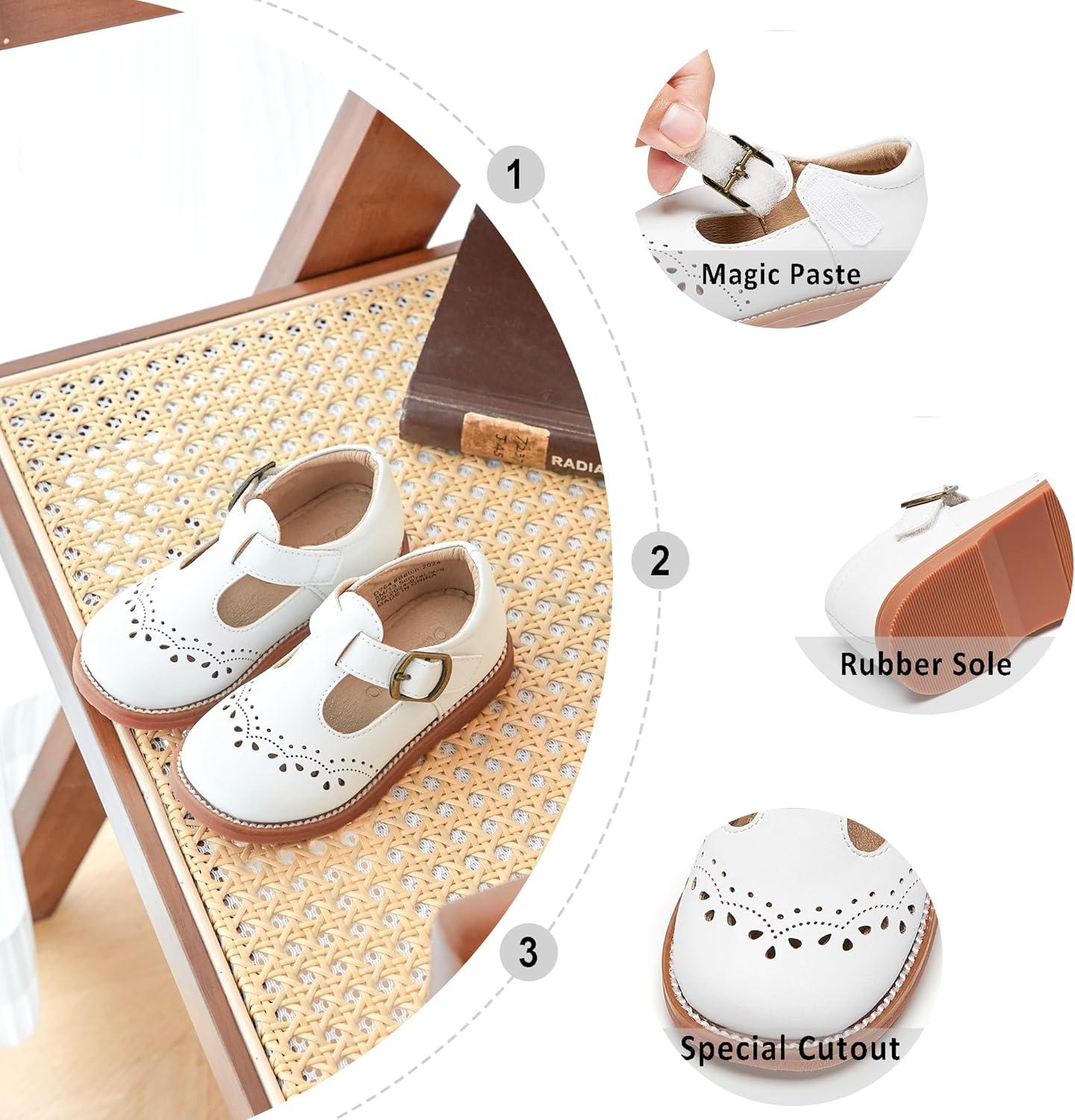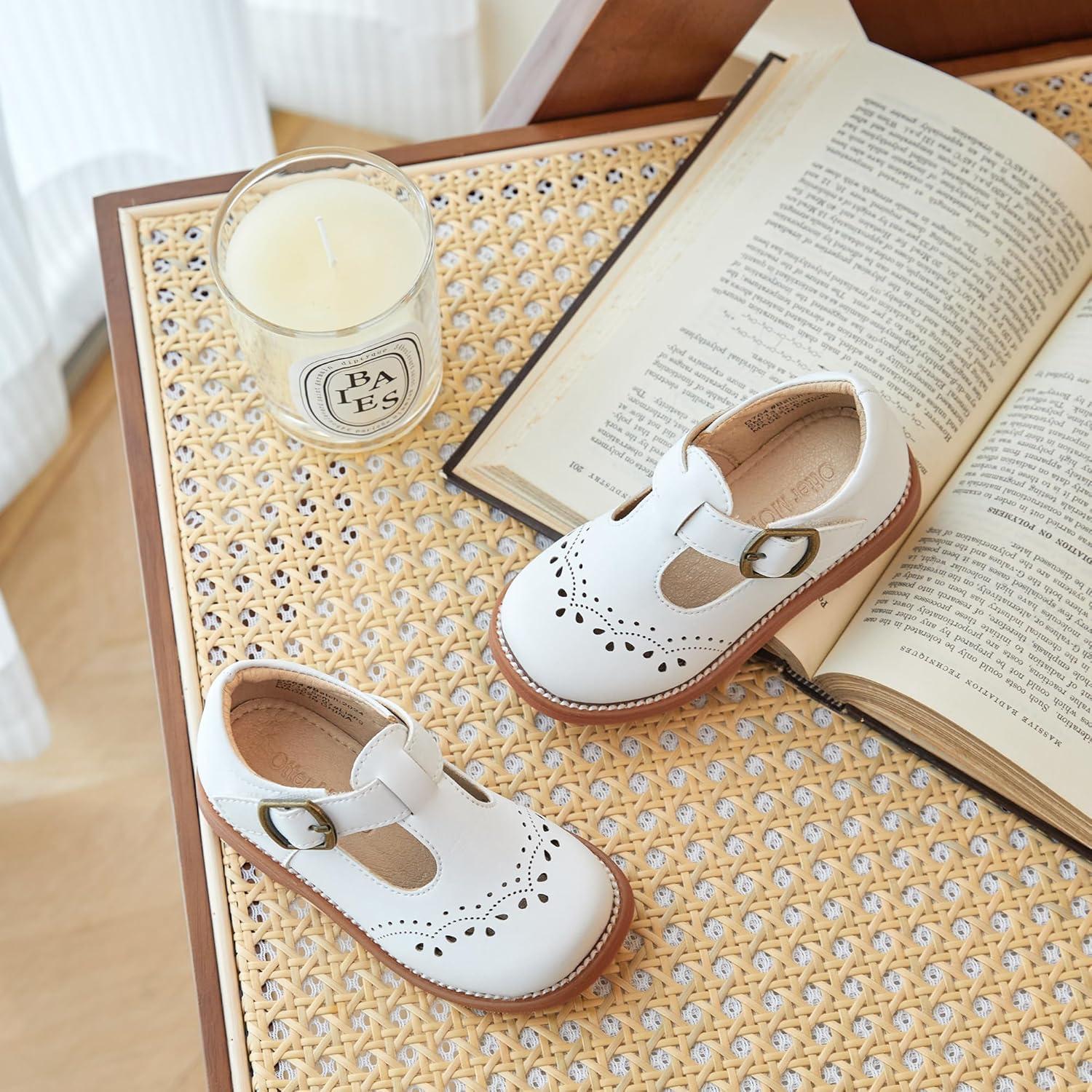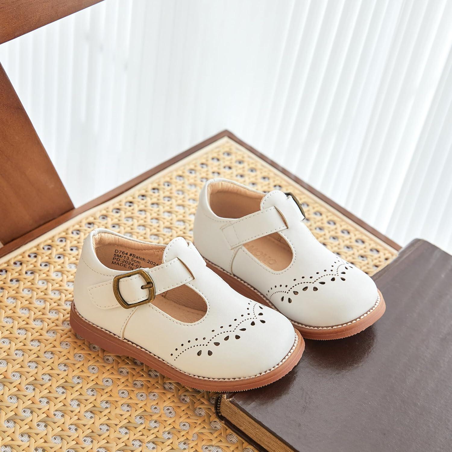 Otter MOMO Toddler/Little Girls Mary Jane Ballerina Flats Shoes Slip-on School Party Dress Shoes(D764-white)