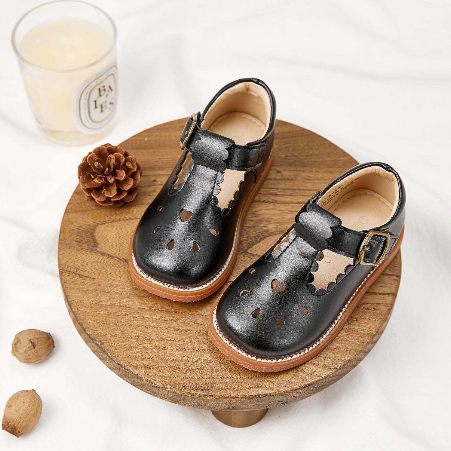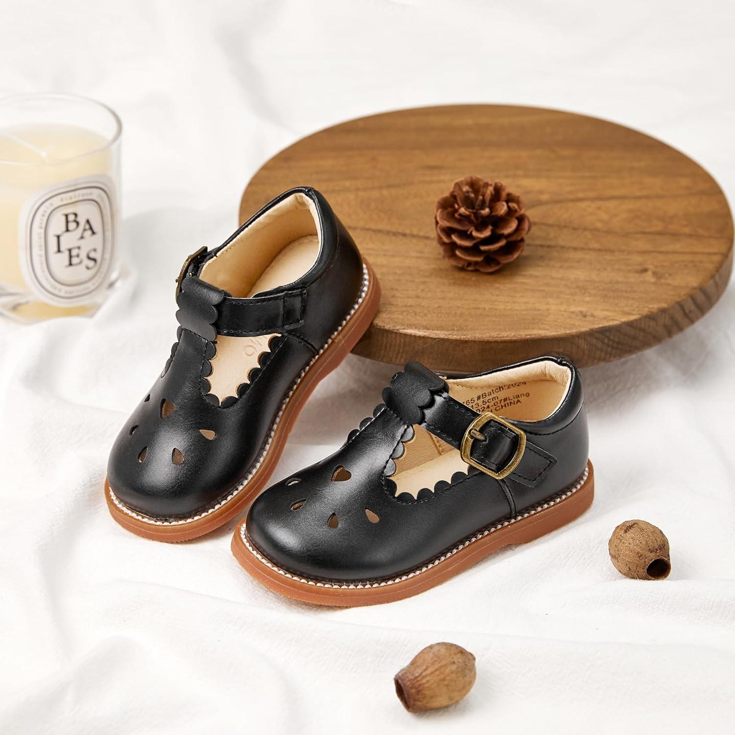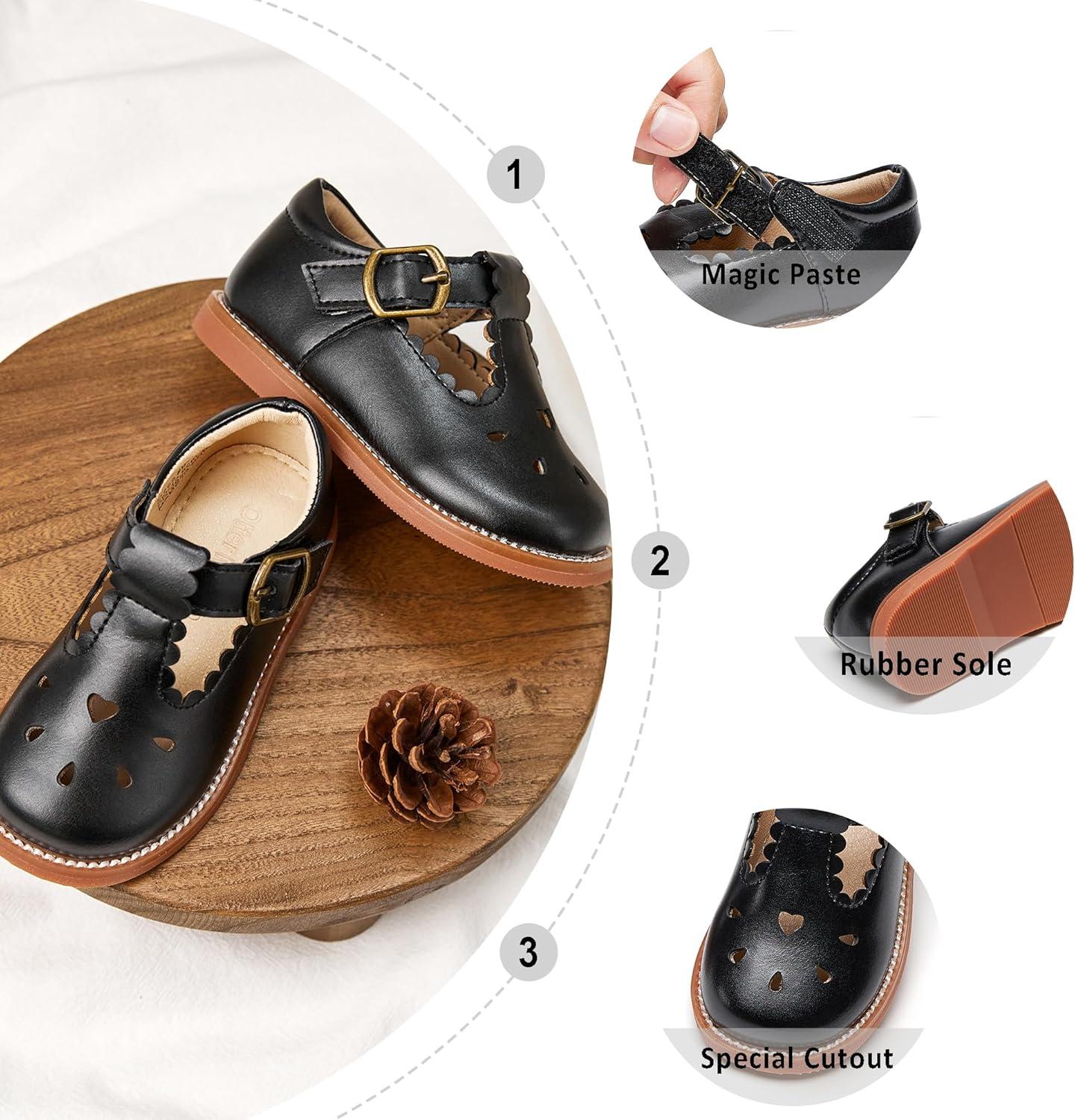 Otter MOMO Toddler/Little Girls Mary Jane Ballerina Flats Shoes Slip-on School Party Dress Shoes(D765-black)