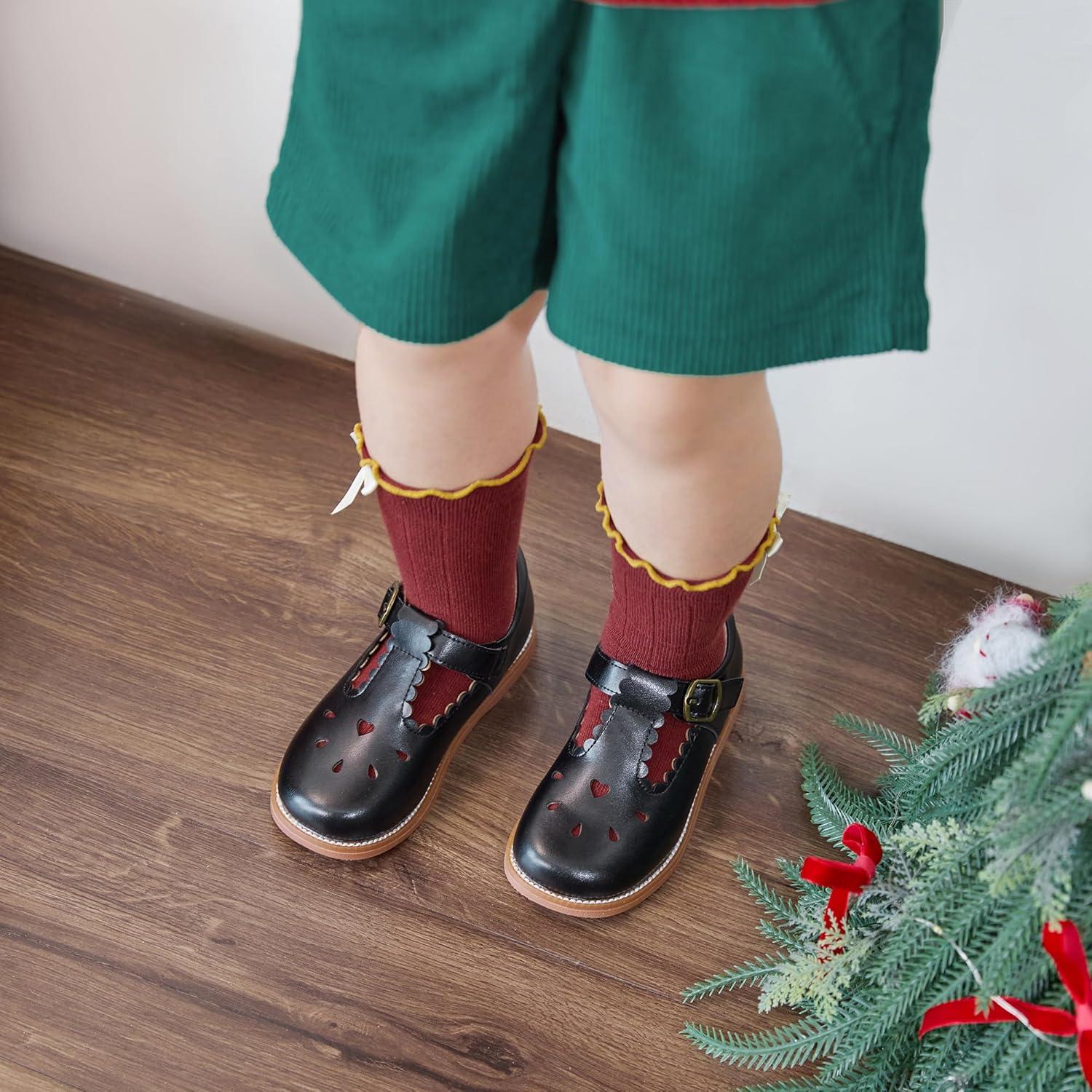Otter MOMO Toddler/Little Girls Mary Jane Ballerina Flats Shoes Slip-on School Party Dress Shoes(D765-red)