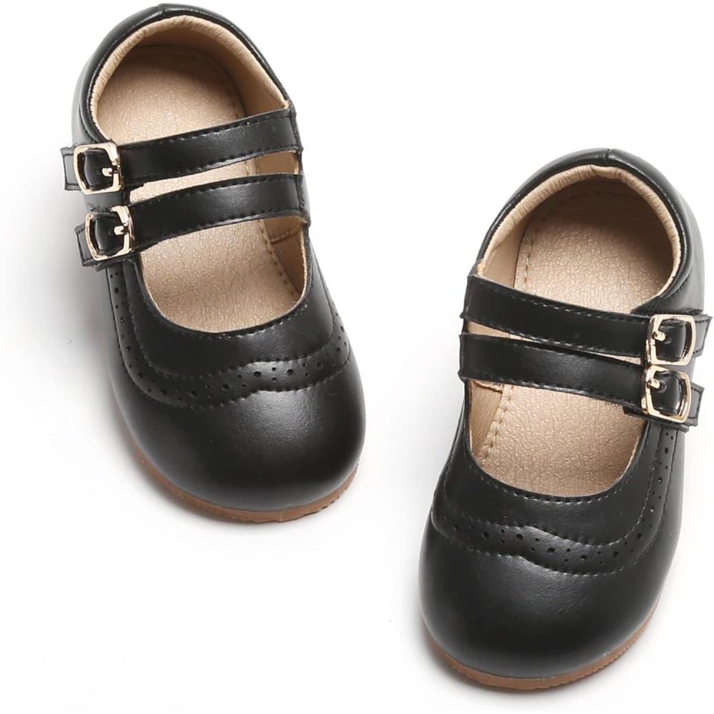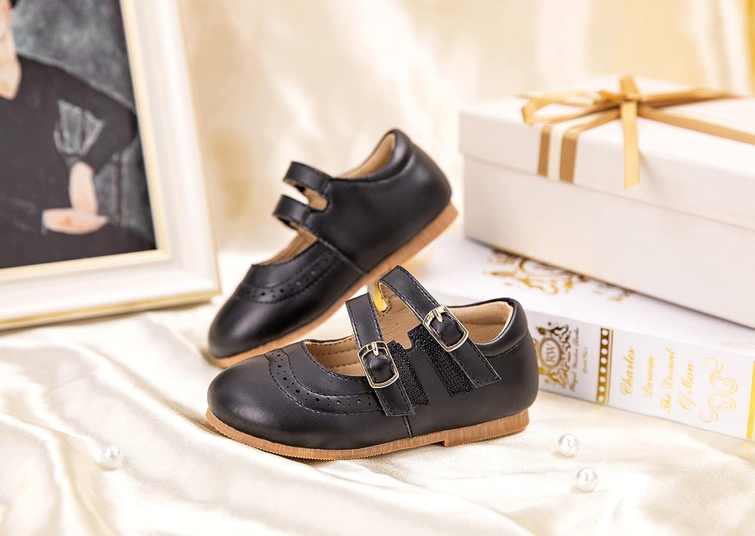 Otter MOMO Toddler/Little Girls Mary Jane Ballerina Flats Shoes Slip-on School Party Dress Shoes(Df08-black)